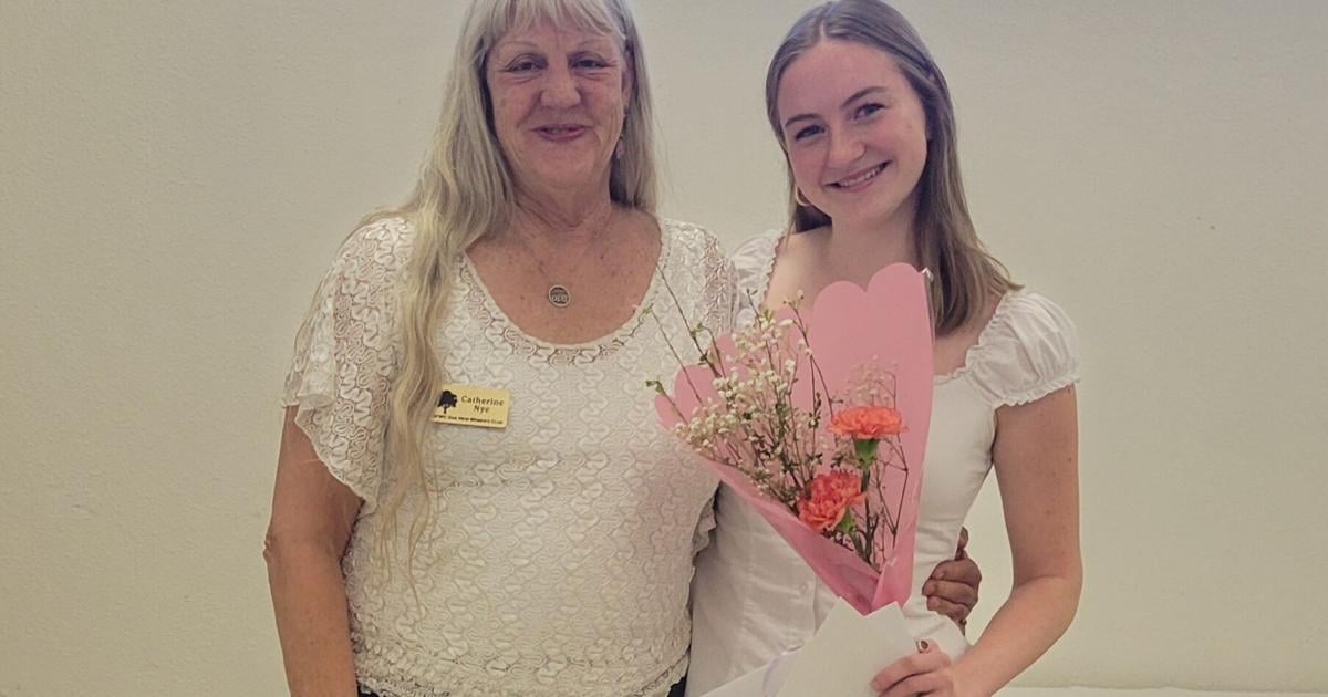 Ventura County Community Foundation Scholarship recipient Madden Miles, right, stands with GFWC Oak View Women’s Club President Cathi Nye May 21.
