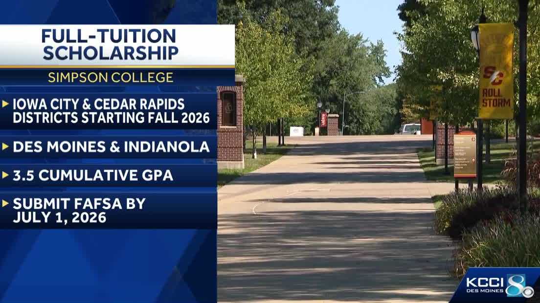 Simpson College is expanding its All-In for Iowa scholarship program, offering full-tuition scholarships to high-achieving students at more Iowa public school districts.
