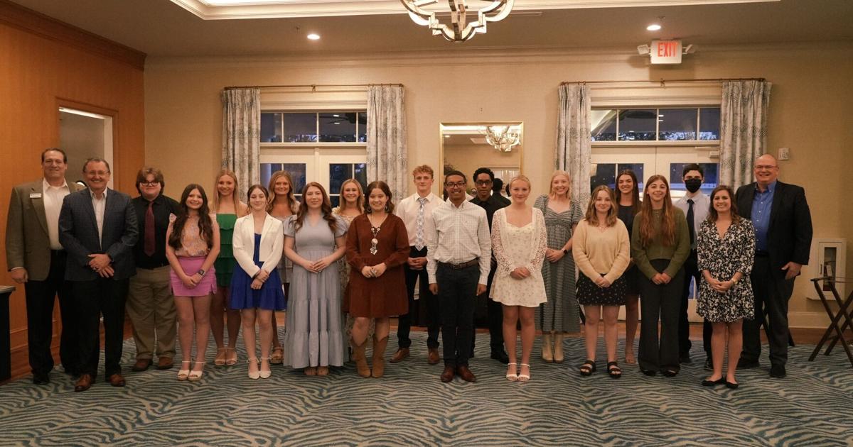 Savannah River Mission Completion awarded 17 Family Scholarships to children of SRMC employees. From left, SRMC Chief Engineer Dr. Thomas Burns, Jr., Chief Operations Officer Wyatt Clark, Wyatt Carnes, Kelsey Velasco, Makena Rockelmann, Katelynn Grace Fulmer, Hunter Creasy, Lacey Ocak, Sinclair Elizabeth Foster, Mehaylia Hammac, Garett Rasmusson, Peyton Anders, Cameron Finklin, Isabel Kelly, Savannah Witt, Katherine Wright, Mary Carson Eick, Paige Jennings, Aaron Roche, SRMC Chief of Staff Emily Saleeby, Director of Optimization and Integration Mike Borders.