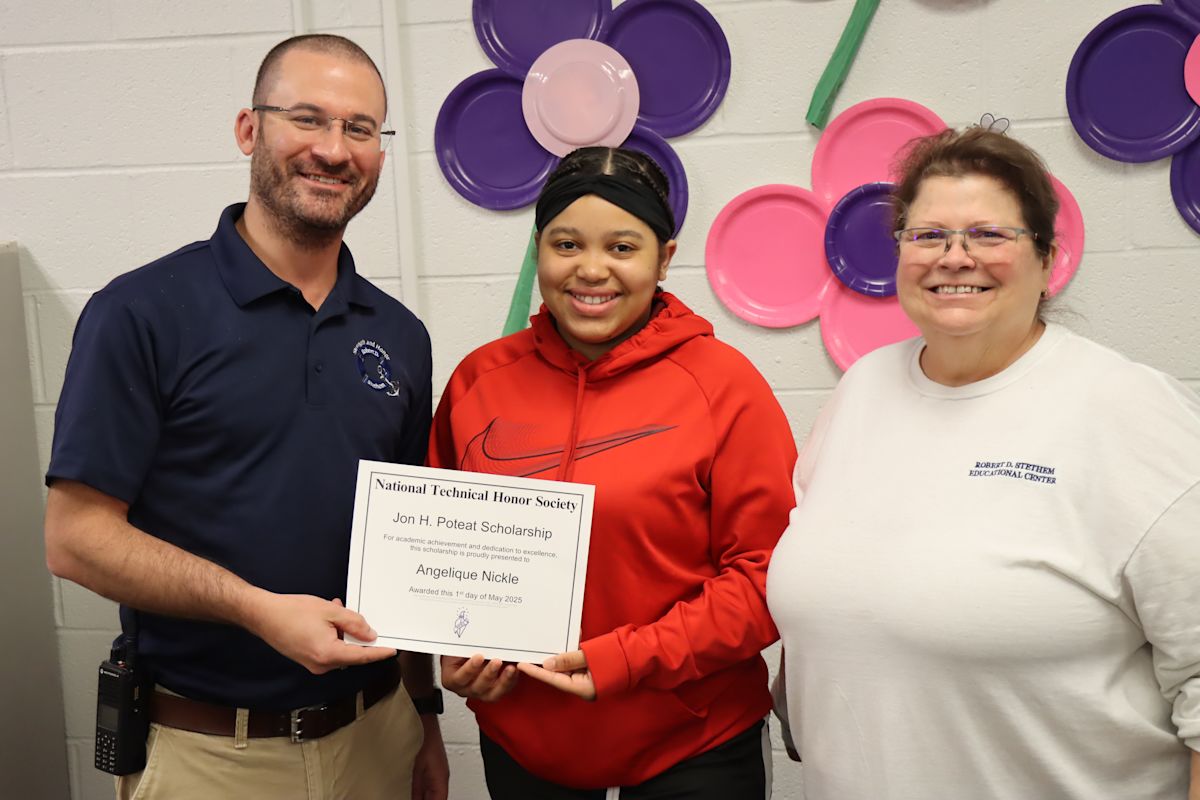 Angelique Nickle, a rising senior in the Academy of Health Professions (AHP) Pharmacy Technician program at Robert D. Stethem Educational Center, recently received the $1,000 Jon H. Poteat Scholarship through the NTHS. She was inducted into the Stethem chapter of NTHS during a February ceremony.