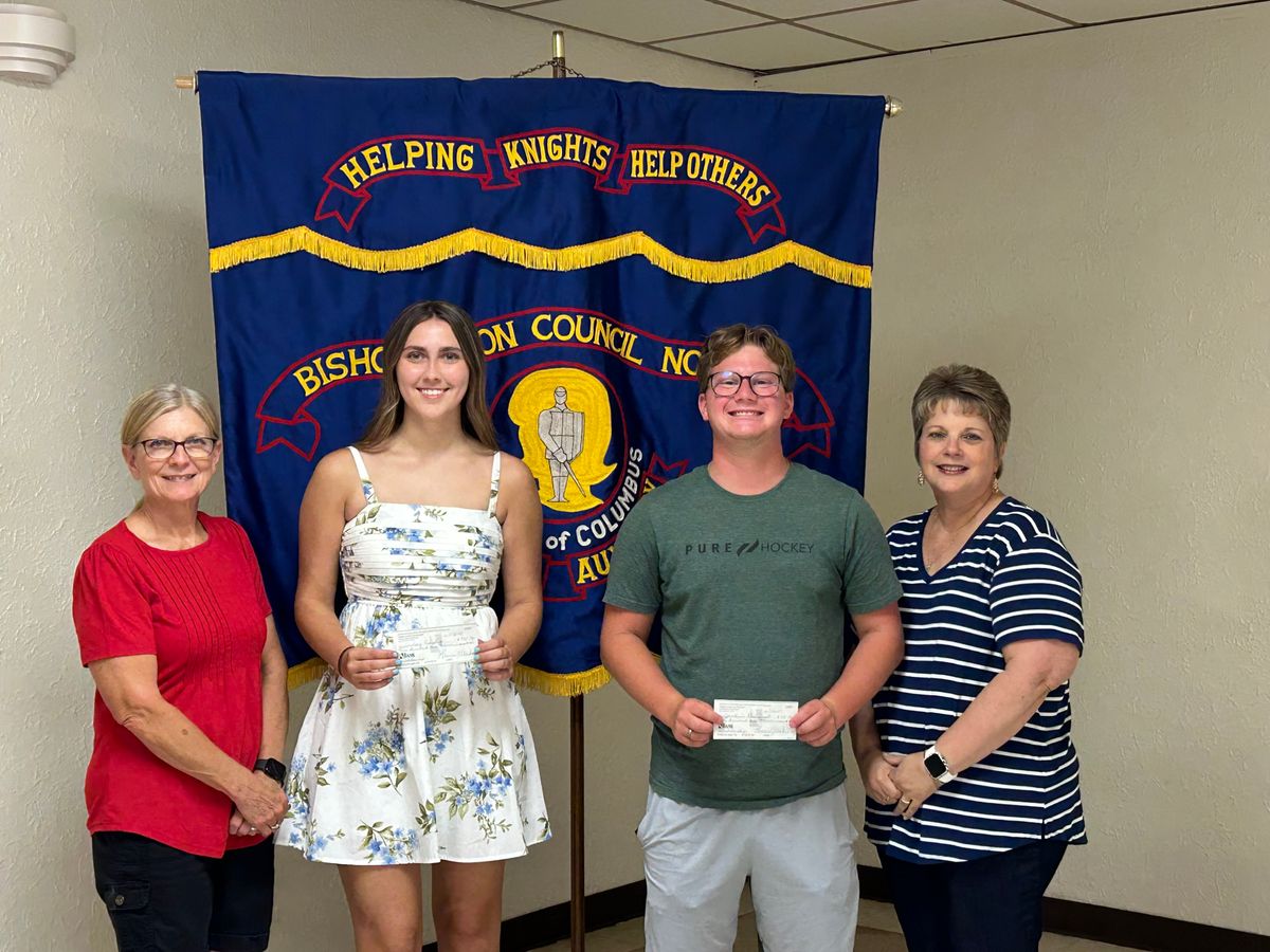 Recently the Jackson Knights of Columbus Ladies Auxiliary presented two scholarships to area graduating seniors. The Ladies Auxiliary is proud to present these scholarships to area high school seniors to help further their education. Pictured here are this year’s scholarship recipients, from left: