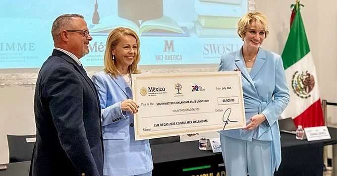 Weatherford, OK – A continued partnership between Southwestern Oklahoma State University and the Consulate of Mexico in Oklahoma City is providing $8,000 in scholarship support for SWOSU students of Mexican origin. The funding comes through the Mexican government’s Institute for Mexicans Abroad (IME) Becas program, with $4,000 awarded by the Consulate and matched by the SWOSU Foundation.