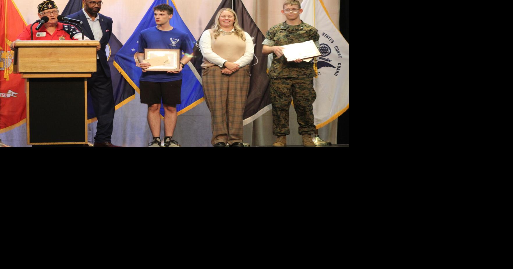(Left to Right) American Legion Post 133 Commander John Potts, Kenneth Reeves, chair of the board for Temple Chamber of Commerce, Kenneth O’Bar from Temple ISD, Camryn Bintz treasurer for Temple Chamber of Commerce, and Dylan Domanowski from Belton ISD during the award presentation.
