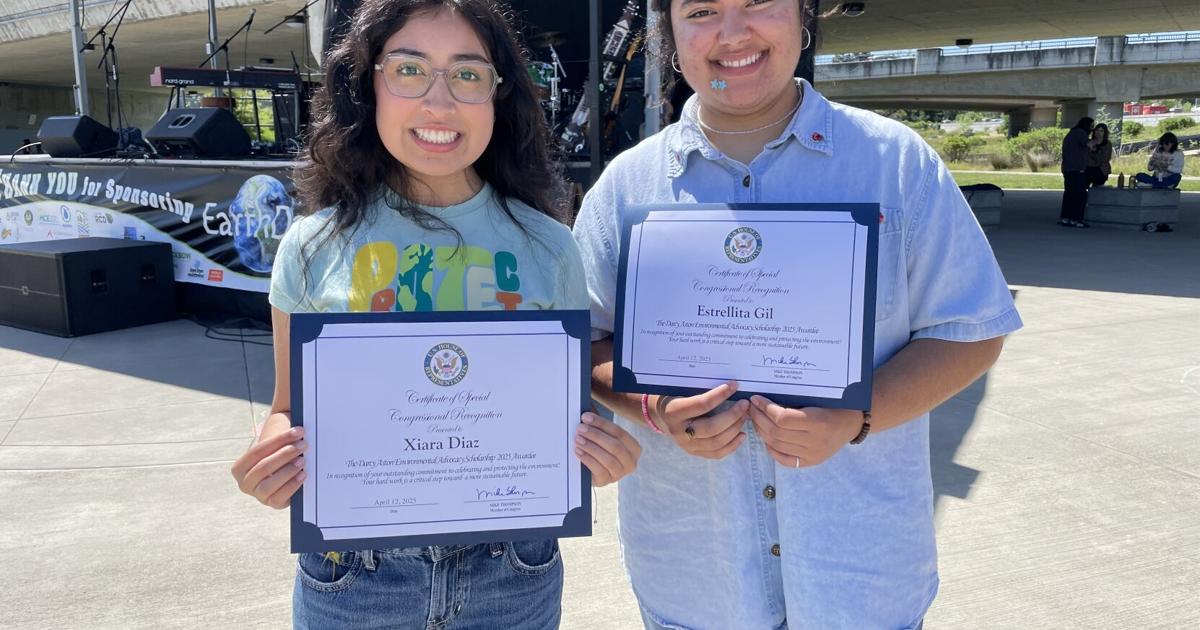 Xiara Diaz and Estrellita Gil received their scholarships in a presentation at Napaās Earth Day Celebration.