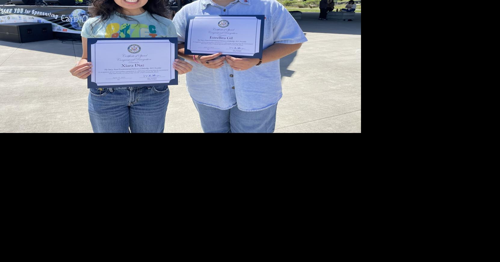 Xiara Diaz and Estrellita Gil received their scholarships in a presentation at Napaās Earth Day Celebration.