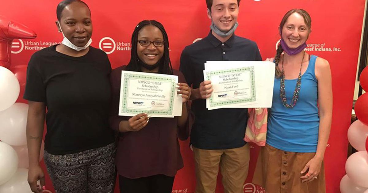 Three La Porte County students were among the winners when the Urban League of Northwest Indiana conducted a virtual celebration of its scholarship recipients. Each winner was shown on Facebook Live as they walked the “Scholarship Red Carpet” at the headquarters in Gary. A total of $35,000 was awarded from a diverse pool of donor organizations, companies and individuals. Among the winners were Mareeya Amiyah Scully of Michigan City High School, and Noah Ford of the Indiana Corrections Academy in La Porte, left photo center; and Andrea Zaknoun of MCHS, at right in right photo.