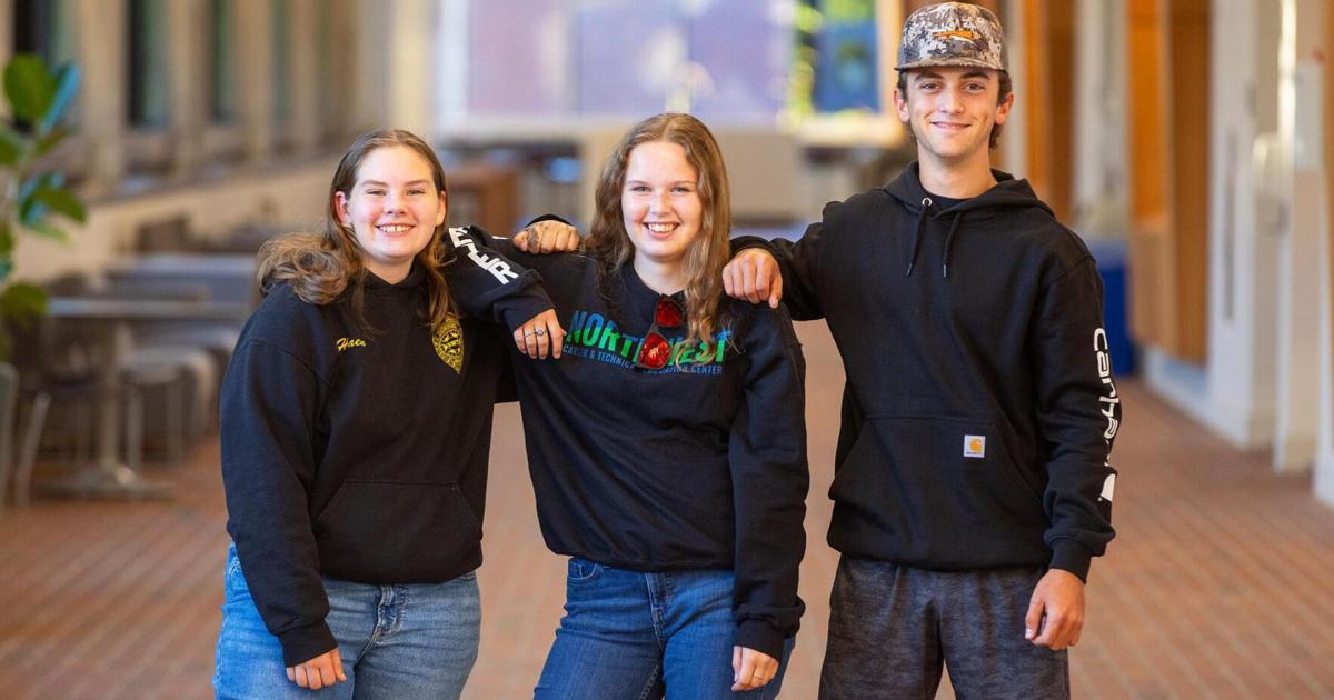 From left, Lily Haen, Jordan Parmeter, and Colby Ledbetter, all local high school students, are attending SUNY Potsdam’s new criminal justice course, Undercover Operations, on campus this fall. SUNY Potsdam photo