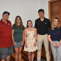 The United Slovak Club recently awarded the annual Tom Malesky Memorial Scholarship to 2025 high school graduates. From left are club treasurer Ron Firment, and scholarship recipients Kailey Lehman of Hempfield Area; and Shayla Cain, Aydan Gross and Avery Polinsky of Mt. Pleasant Area. Absent from the photo are winners Seth Painter, Rylin Bugosh and Paige Lorince of Mt. Pleasant Area; and Tyler Martin of Greensburg-Salem.