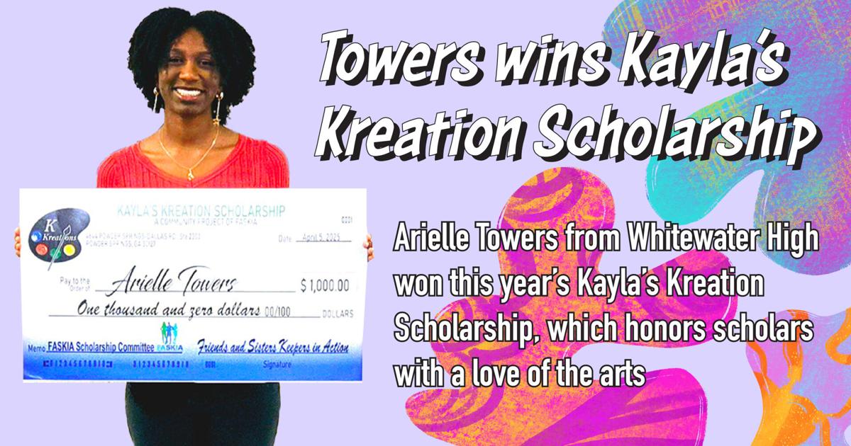 Arielle Towers of Whitewater High is the winner of this year’s Kayla’s Kreation Scholarship.