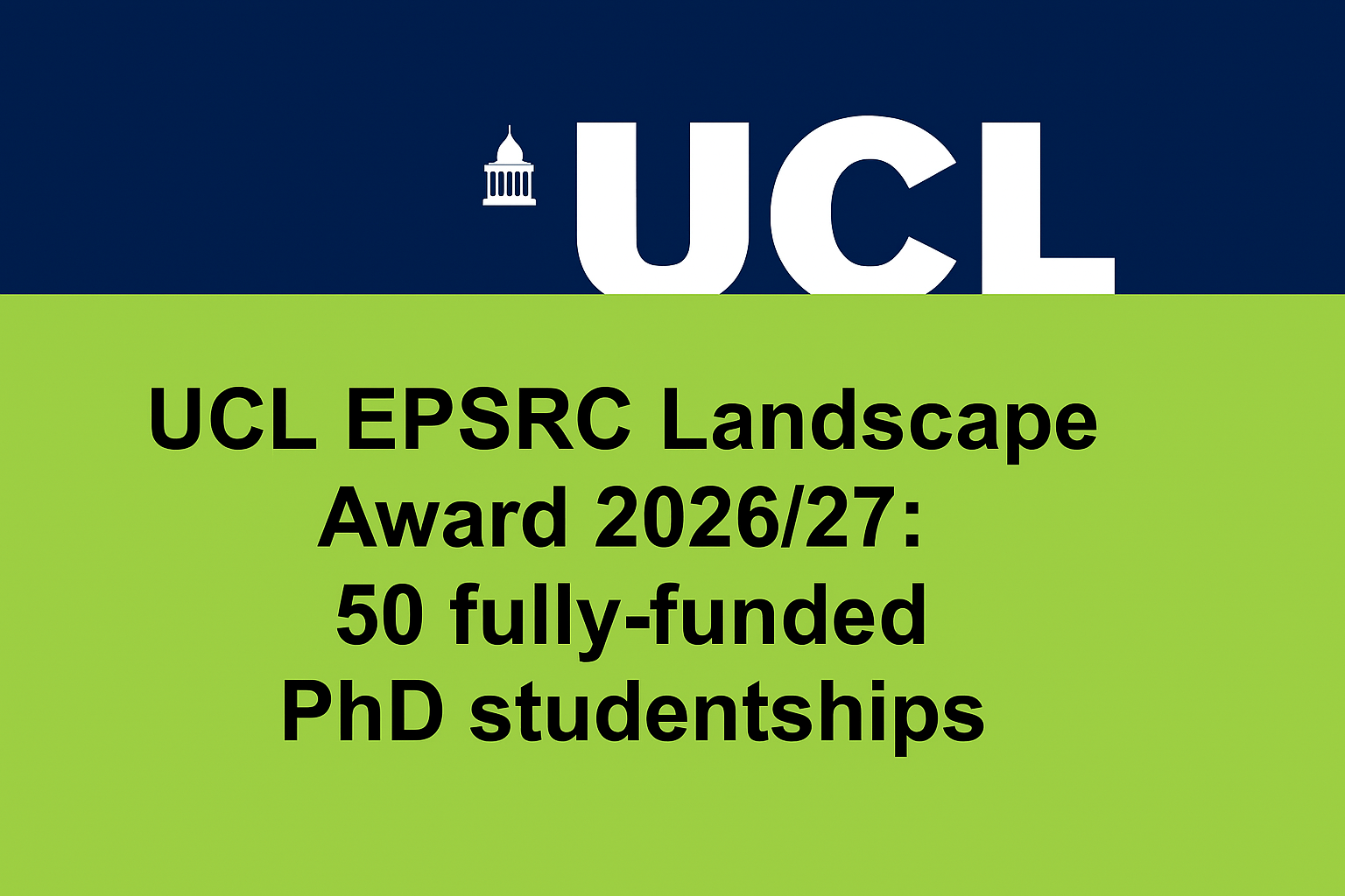 The UCL EPSRC Landscape Award (UELA) 2026/27 will have 50 fully-funded studentships with a start date of 01-Oct-2026.