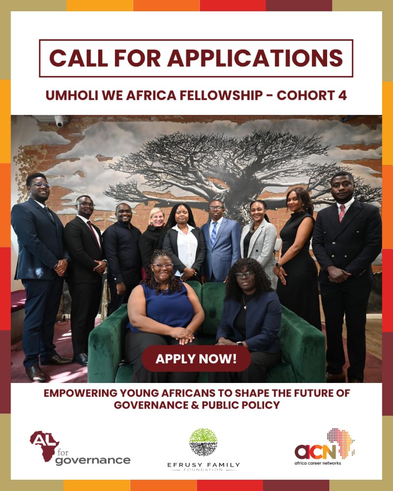 The Umholi we Africa Fellowship is now accepting applications for its fourth cohort. Led by the AL for Governance Network and fully funded by the Efrusy Family Foundation, this fellowship develops the next generation of ethical, mission-driven African public leaders. Launched in 2023, UwA places exceptional young Africans in high-impact government and policy roles within their home countries, enabling them to contribute directly to national development and institutional transformation.