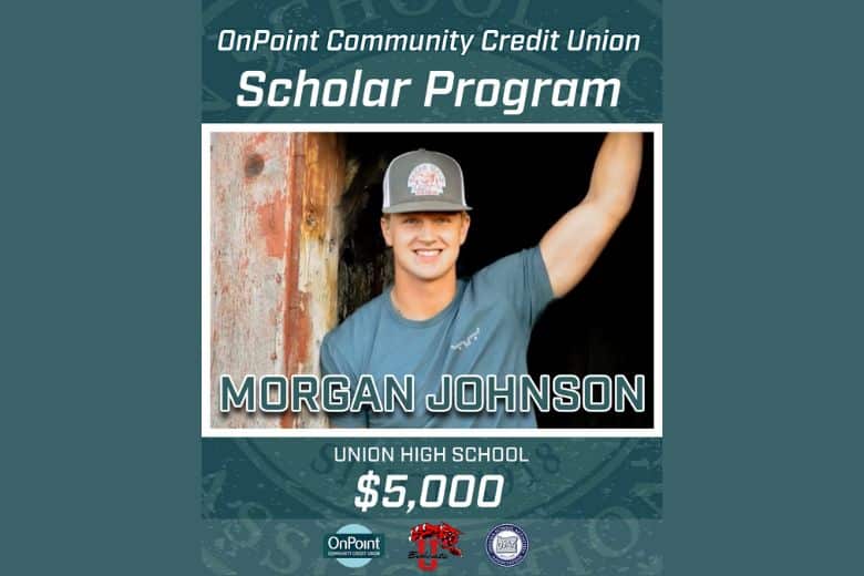 UNION – A big congratulations to Union High School Senior Morgan L. Johnson, who was recently selected for a $5,000 dollar scholarship by the Oregon School Activities Association (OSAA) and OnPoint Community Credit Union. Part of the OnPoint Community Credit Union Scholar Program, Morgan was one of only six graduating Oregon seniors to be selected this year. In press a release, provided by OnPoint Community Union, OnPoint gave the following bio on Morgan: