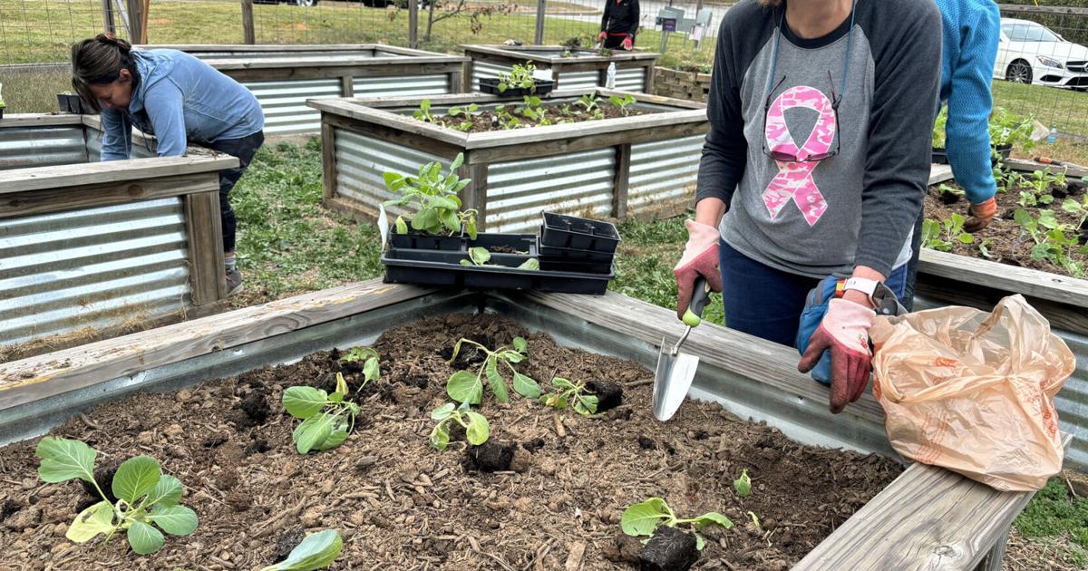 Members of the Ama-Kanasta Garden Club help maintain the Mill Village Community Garden.