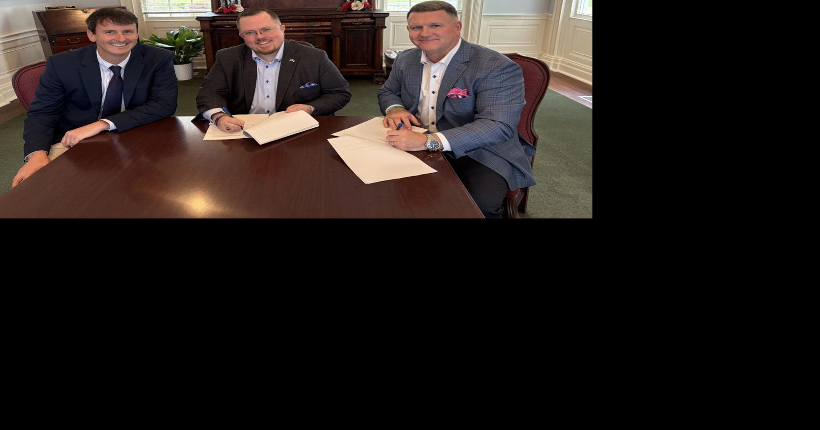USCA alumni Jason Crane, center, and Gerry Owen, right, sit alongside Wesley Brown, USCA’s major gift officer, as they establish the Jason K. Crane and Gerry L. Owen Endowed Business Scholarship.