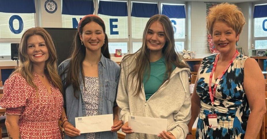 Pictured, from left, are Oldham County High School Alumni Laine Hill, scholarship recipients Josephina Williams, Haley Wood and Oldham County High School Alumni Rhonda Sedoris.